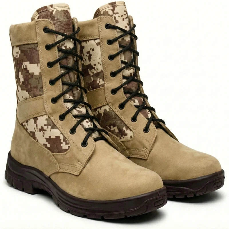 Берці 289T нубук камуфляж призначені для інтенсивної експлуатації у виробничих, складських та польових умовах. Верх із натурального нубуку у поєднанні з міцною тканиною Oxford у камуфльованому виконанні забезпечує високу зносостійкість, комфорт і практичність. Полегшена конструкція зменшує навантаження на ноги, а поліуретанова підошва литого кріплення добре амортизує удари та гарантує стабільність і надійне зчеплення на різних типах поверхонь.
