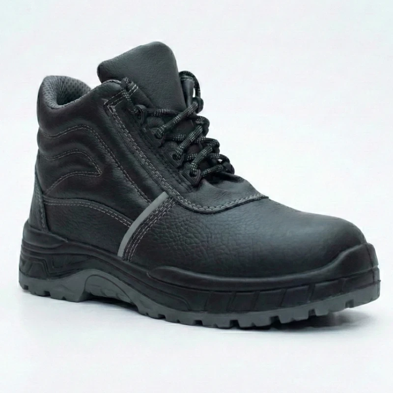 Черевики робочі АТОМ розроблені для щоденної інтенсивної експлуатації з урахуванням анатомічних особливостей широкої стопи та високого підйому. Збільшена колодка забезпечує комфорт без тиску навіть при тривалому носінні. Верх із покращеної натуральної шкіри гарантує високу зносостійкість і довгий термін служби. Подвійна поліуретанова підошва ефективно амортизує навантаження, стійка до масел, бензину та кислот, а самоочисний протектор забезпечує стабільне зчеплення з поверхнею у виробничих та складських умовах.